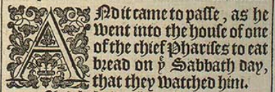1 And it came to passe, as he went into the house of one of the chief Pharises to eat bread on þe Sabbath day, that they watched him.