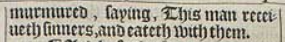 2 And the Pharises and Scribes murmured, murmured, saying, This man receiueth sinners, and eateth with them.