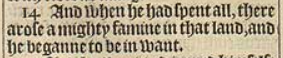 14 And when he had spent all, there arose a mighty famine in that land, and he beganne to be in want.