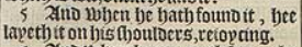 5 And when he hath found it, hee layeth it on his shoulders, reioycing.