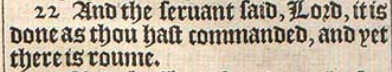 8 ¶ Oder welche Frau, die zehn ||Silberstücke hat, und ein Stück verliert, zündet nicht eine Kerze an und fegt das Haus und sucht sorgfältig, bis sie es findet?[||Drachme, hier übersetzt ein Stück Silber, ist der achte Teil einer Unze, was sieben Pence und einem halben Penny entspricht, und ist gleich dem römischen Penny, Matthäus 18:28]