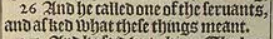 26 And he called one of the seruants, and asked what these things meant.