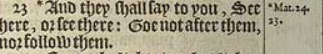 23 *And they shall say to you, See here, or see there: Goe not after them, nor follow them.[*Mat. 24. 23.]