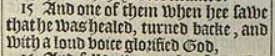 15 And one of them when hee sawe that he was healed, turned backe, and with a loud voice glorified God,