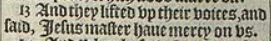13 And they lifted vp their voices, and said, Iesus master haue mercy on vs.