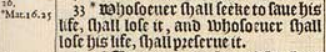 33 *Whosoeuer shall seeke to saue his life, shall lose it, and whosoeuer shall lose his life, shall preserue it. [*Mat.16. 25]