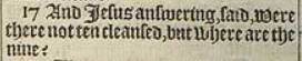 17 And Iesus answering, said, Were there not ten cleansed, but where are the nine?