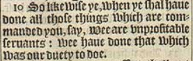 10 So likewise ye, when ye shal haue done all those things which are commanded you, say, Wee are vnprofitable seruants: Wee haue done that which was our duety to doe.