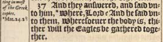 37 And they answered, and said vnto him,*Where, Lord? And he said vnto them, Wheresoeuer the body is, thither will the Eagles be gathered together.[*Mat. 24. 28]
