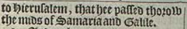 11 ¶ And it came to passe, as he went to Hierusalem, that hee passed thorow the mids of Samaria and Galile.
