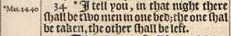 34 *I tell you, in that night there shall be two men in one bed; the one shal be taken, the other shall be left. [*Mat. 24. 40]