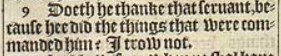 9 Doeth he thanke that seruant, because hee did the things that were commanded him? I trow not.