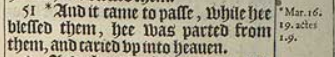 51 *And it came to passe, while hee blessed them, hee was parted from them, and caried vp into heauen.[*Mar.16.19. actes 1.9.]