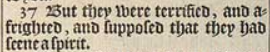 37 But they were terrified, and afrighted, and supposed that they had seene a spirit.