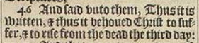46 And said vnto them, Thus it is written, & thus it behoued Christ to suffer, & to rise from the dead the third day: