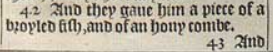 42 And they gaue him a piece of a broyled fish, and of an hony combe.