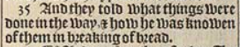 35 And they told what things were done in the way, & how he was knowen of them in breaking of bread.