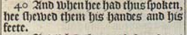 40 And when hee had thus spoken, hee shewed them his handes and his feete.