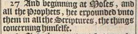 27 And beginning at Moses, and all the Prophets, hee expounded vnto them in all the Scriptures, the things concerning himselfe.