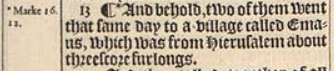 13 ¶ *And behold, two of them went that same day to a village called Emaus, which was from Hierusalem about threescore furlongs.[*Marke 16.12.]