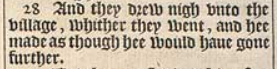 28 And they drew nigh vnto the village, whither they went, and hee made as though hee would haue gone further.