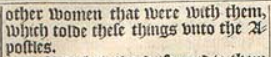 10 It was Marie Magdalene, & Ioanna, & Mary the mother of Iames, and other women that were with them, which tolde these things vnto the Apostles.