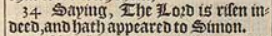 34 Saying, The Lord is risen indeed, and hath appeared to Simon.