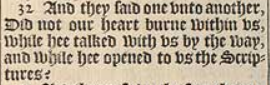 32 And they said one vnto another, Did not our heart burne within vs, while hee talked with vs by the way, and while hee opened to vs the Scriptures?