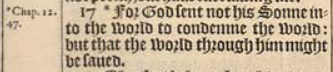 17 *For God sent not his Sonne into the world to condemne the world: but that the world through him might be saued.[*Chap. 12. 47.]