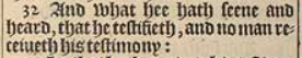 32 And what hee hath seene and heard, that he testifieth, and no man receiueth his testimony: