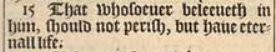 15 That whosoeuer beleeueth in him, should not perish, but haue eternall life.