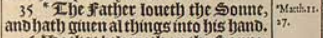 35 *The Father loueth the Sonne, and hath giuen al things into his hand.[*Matth.11.27.]