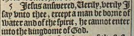 5 Iesus answered, Uerily, verily I say vnto thee, except a man be borne of water and of the spirit, he cannot enter into the kingdome of God.