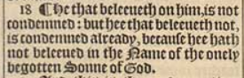 18 ¶ He that beleeueth on him, is not condemned: but hee that beleeueth not, is condemned already, because hee hath not beleeued in the Name of the onely begotten Sonne of God.