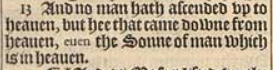 13 And no man hath ascended vp to heauen, but hee that came downe from heauen, euen the Sonne of man which is in heauen.