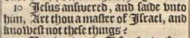 10 Iesus answered, and saide vnto him, Art thou a master of Israel, and knowest not these things?
