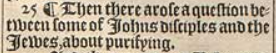 25 ¶ Then there arose a question between some of Iohns disciples and the Iewes, about purifying.