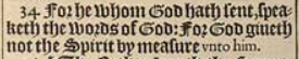 34 For he whom God hath sent, speaketh the words of God: For God giueth not the Spirit by measure vnto him.
