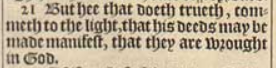 21 But hee that doeth trueth, commeth to the light, that his deeds may be made manifest, that they are wrought in God.