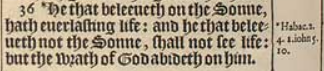 36 *He that beleeueth on the Sonne, hath euerlasting life: and he that beleeueth not the Sonne, shall not see life: but the wrath of God abideth on him.[*Habac.2. 4. 1.iohn 5.10.]