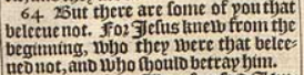 64 But there are some of you that beleeue not. For Iesus knew from the beginning, who they were that beleeued not, and who should betray him.