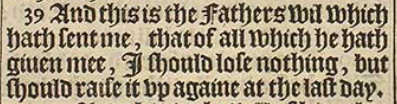 39 And this is the Fathers wil which hath sent me, that of all which he hath giuen mee, I should lose nothing, but should raise it vp againe at the last day.