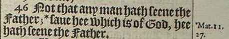 46 Not that any man hath seene the Father; saue hee which is of God, hee hath seene the Father.[*Mat.11.27.]