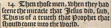 14 Then those men, when they had seene the miracle that Iesus did, said, This is of a trueth that Prophet that should come into the world.
