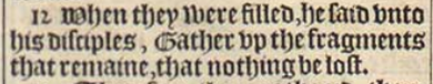 12 When they were filled, he said vnto his disciples, Gather vp the fragments that remaine, that nothing be lost.