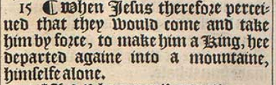 15 ¶ When Iesus therefore perceiued that they would come and take him by force, to make him a King, hee departed againe into a mountaine, himselfe alone.