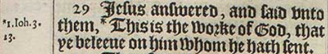 29 Iesus answered, and said vnto them, *This is the worke of God, that ye beleeue on him whom he hath sent.[*1.Ioh.3.13.]