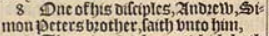 8 One of his disciples, Andrew, Simon Peters brother, saith vnto him,