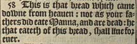 58 This is that bread which came downe from heauen: not as your fathers did eate Manna, and are dead: he that eateth of this bread, shall liue for euer.