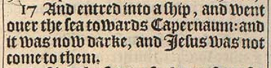 17 And entred into a ship, and went ouer the sea towards Capernaum: and it was now darke, and Iesus was not come to them.